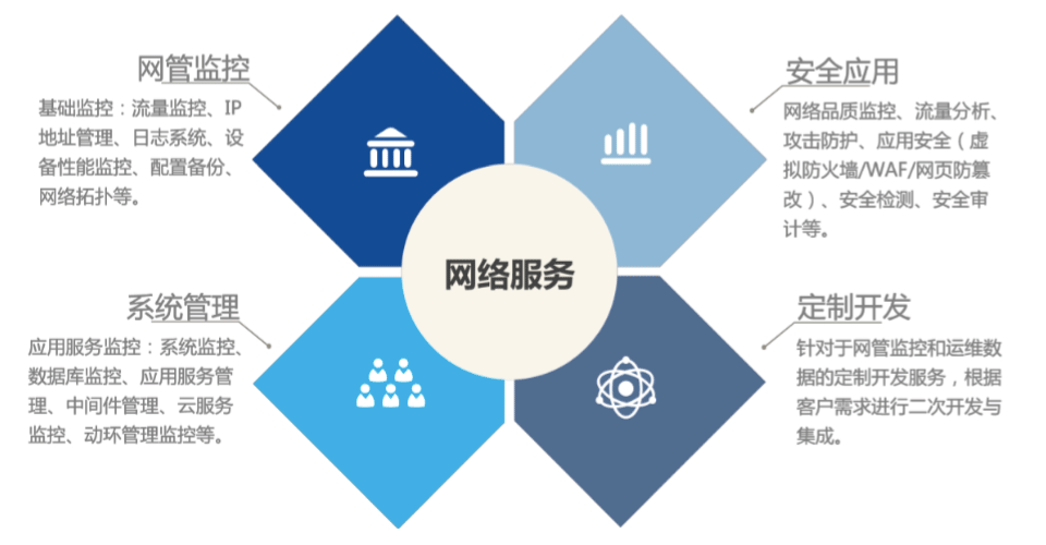 创始团队成员经过 15+年的数据中心运营积累、自主开发和实际应用,为客户提供一 系列、多维度的网络代运维服务,如:网管监控、安全应用服务、系统运维服务、技术解决方案等,同时也可为客户提供更为个性化的定制服务。挚云本着“服务至上”的原则, 力求在网络服务上做到产品更好、范围更广、品质更高,为不同客户带来更优质、更有价值的服务及体验。